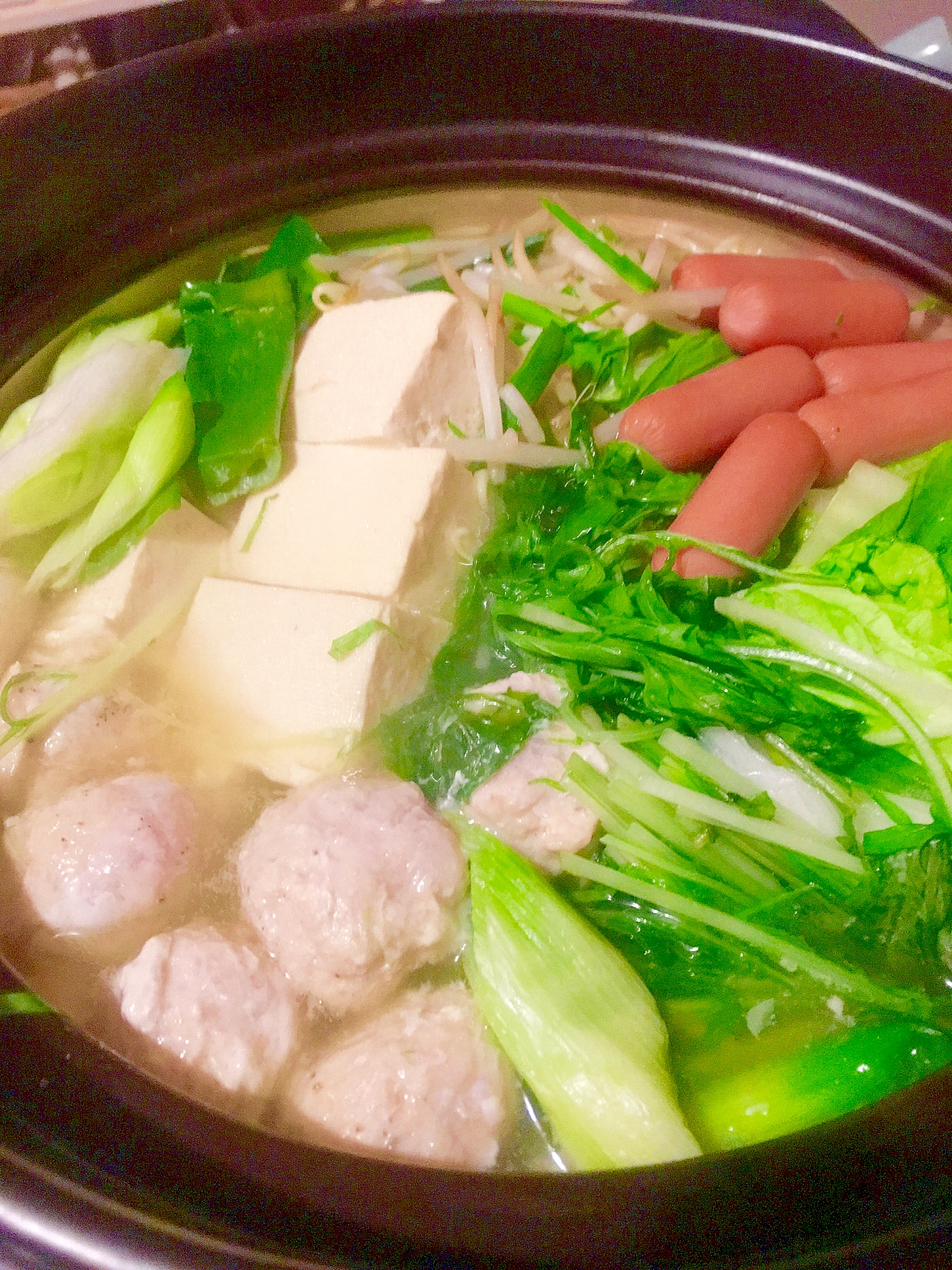 ダシダ 韓国出汁 で ウインナーと鶏団子のお鍋 レシピ 作り方 By Ciciino 楽天レシピ
