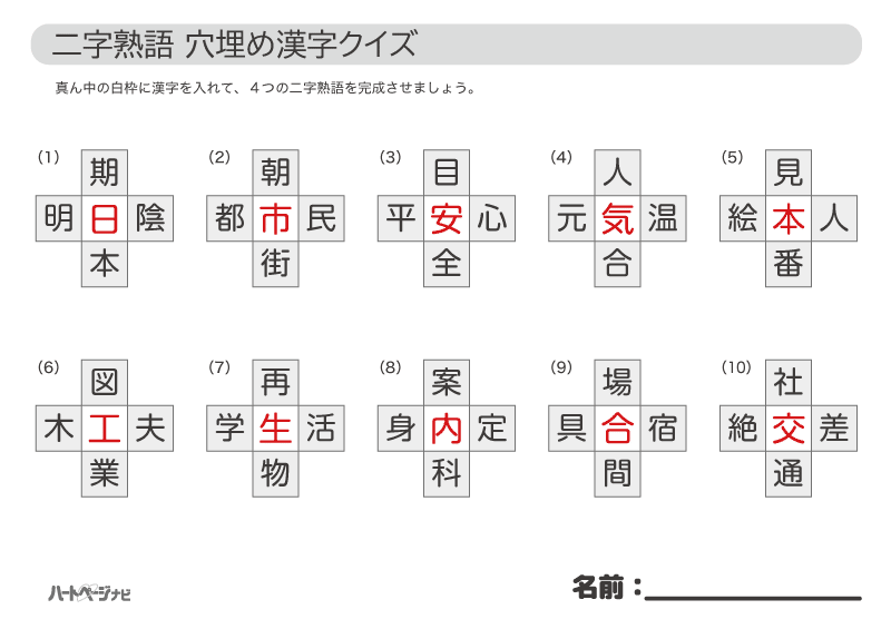 二字熟語クイズ 漢字を入れる穴埋めクイズ 高齢者の脳トレにおすすめの10問 ハートページナビ